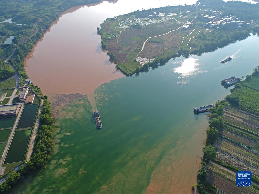 廣西南寧市江南區江西鎮三江口水域,左江與右江水在交匯處清濁交融(9月3日攝,無(wú)人機照片)。