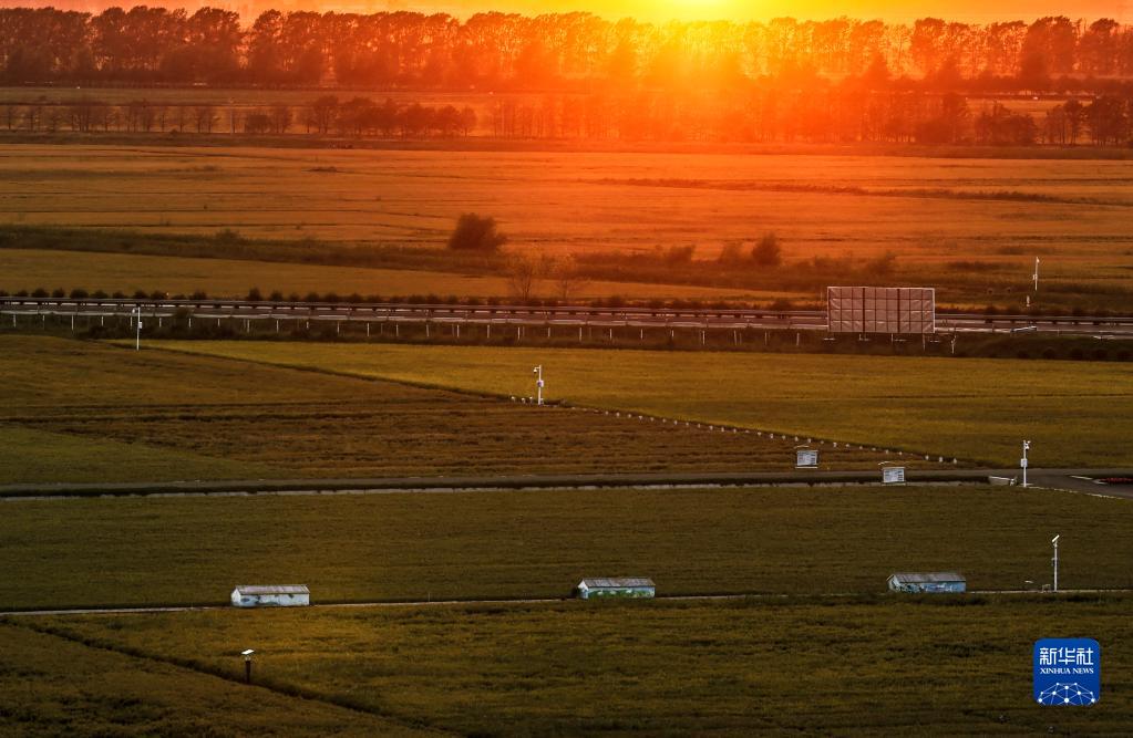 9月2日拍攝的富錦市萬(wàn)畝水稻科技示范園里的稻田和科技設備。