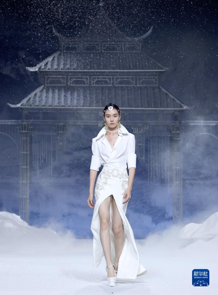 9月4日,模特在中國國際時(shí)裝周(2023春夏系列)開(kāi)幕秀上展示設計師熊英設計的時(shí)裝。