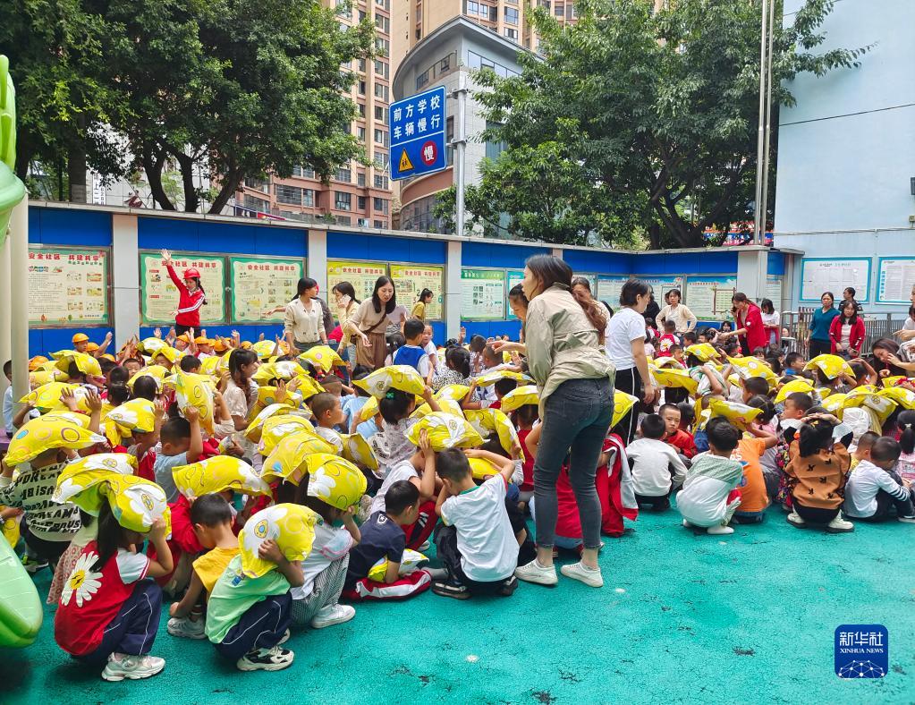 9月5日,雅安市石棉縣幼兒園老師組織幼兒有序疏散到操場(chǎng),并對幼兒進(jìn)行心理疏導。