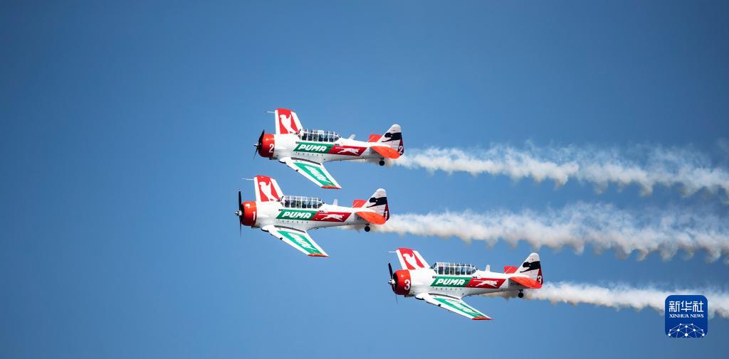 這是9月4日在南非約翰內斯堡拍攝的蘭德航展上的飛行表演。