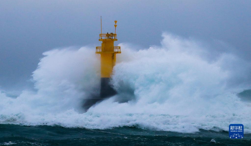 這是9月5日在韓國濟州島西歸浦市附近海域拍攝的海浪。