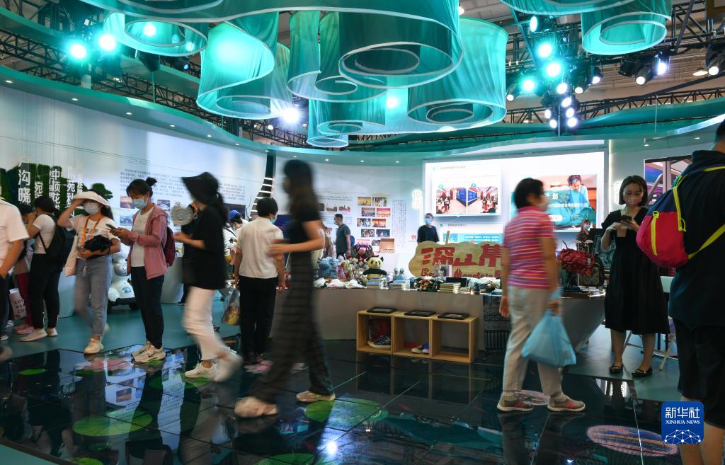 9月4日,觀(guān)眾在服貿會(huì )首鋼園區的文旅服務(wù)專(zhuān)題展區游覽購物。