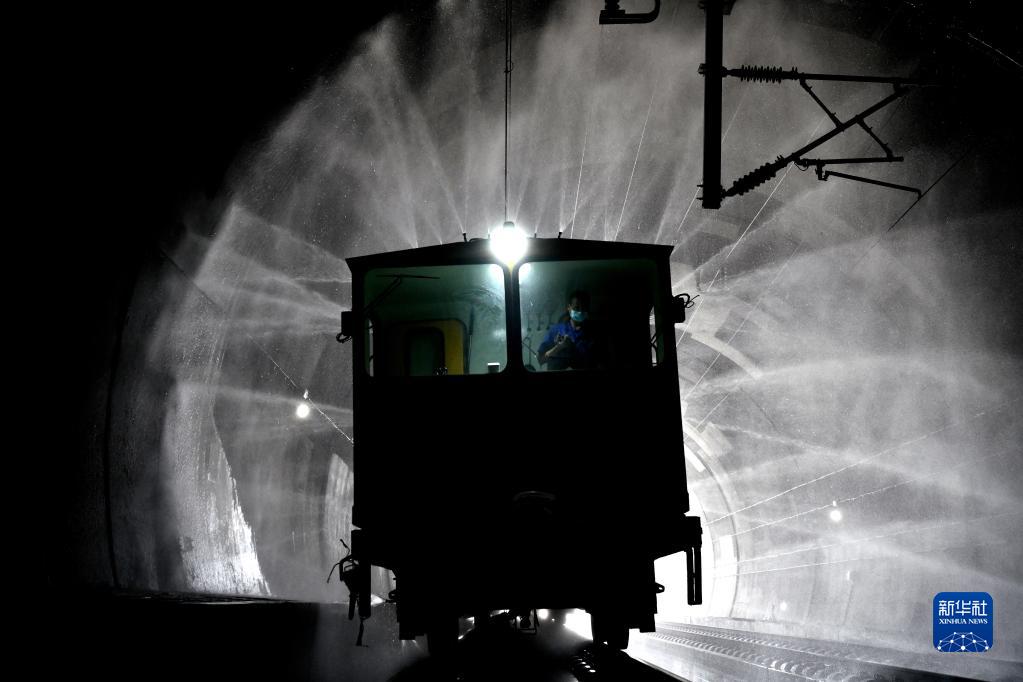 9月5日,在濟萊高鐵章丘段,隧道清洗車(chē)在清洗隧道壁。