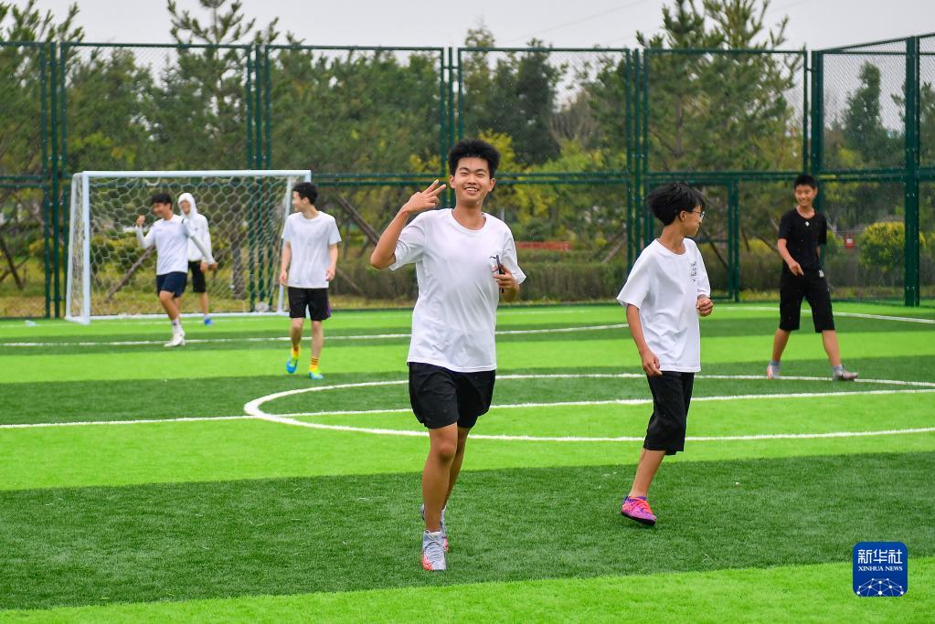 在延邊朝鮮族自治州延吉市阿里郎足球公園,市民在球場(chǎng)踢球(9月4日攝)。