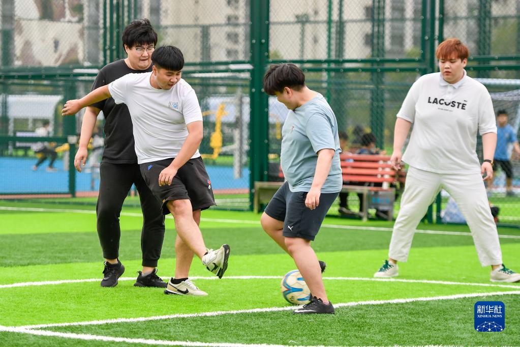 在延邊朝鮮族自治州延吉市阿里郎足球公園,市民在球場(chǎng)踢球(9月4日攝)。