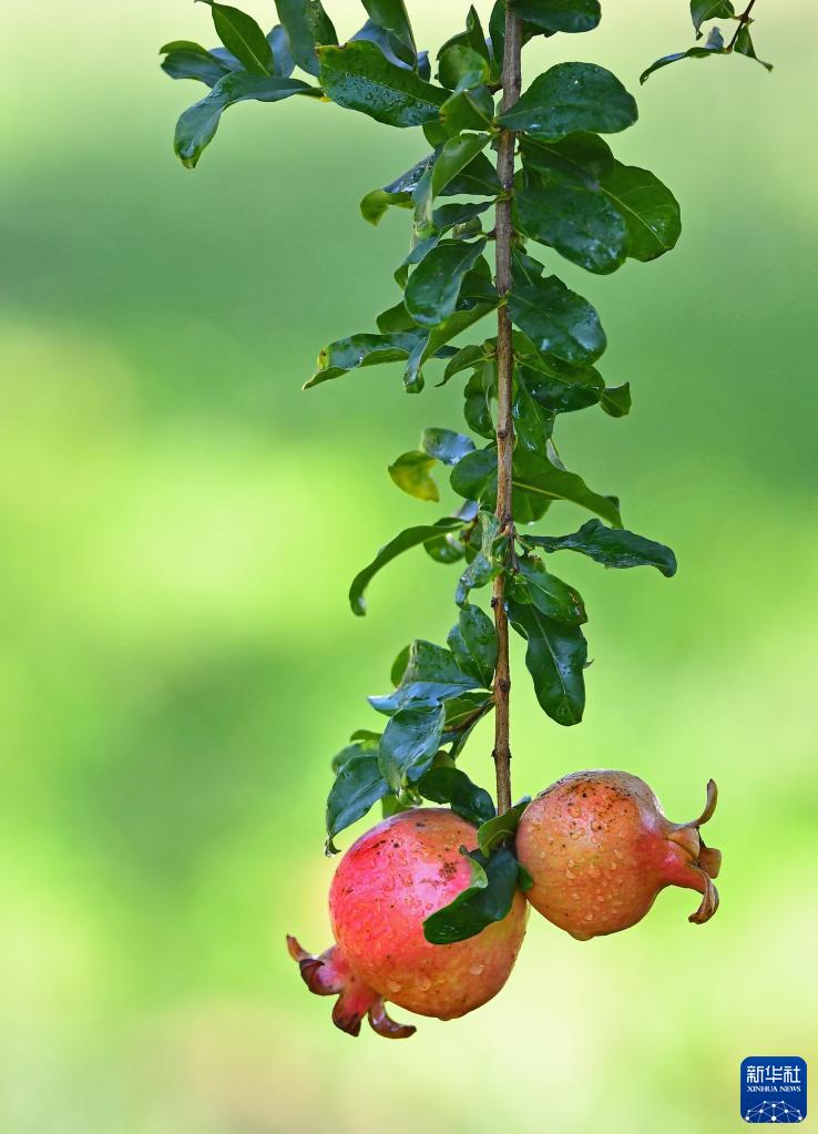 9月4日,在山東省滕州市西崗鎮,農戶(hù)種植的石榴即將成熟。