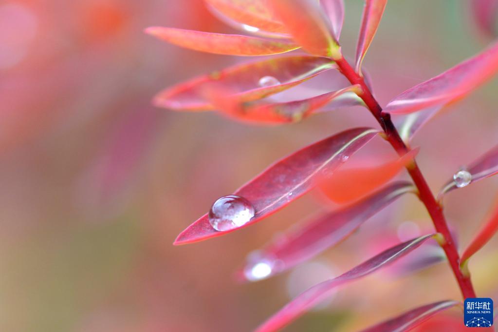 9月4日,在云南省迪慶藏族自治州香格里拉市高山植物園,植物掛著(zhù)露珠。