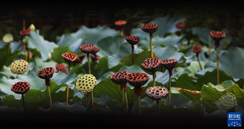 這是9月4日在江蘇蘇州古典園林拙政園拍攝的蓮蓬。