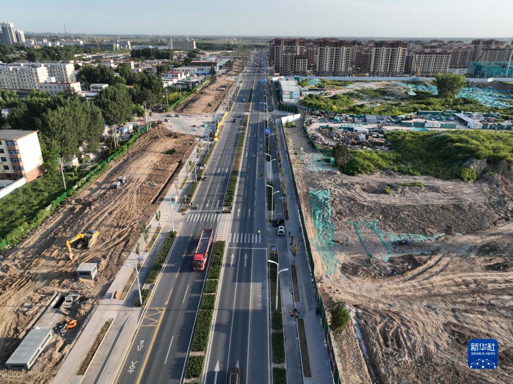 9月5日拍攝的雄安新區容西片區配套市政道路(無(wú)人機照片)。