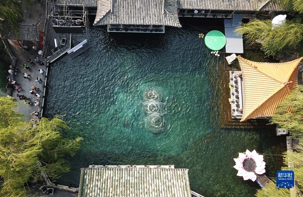 9月6日,濟南趵突泉泉水噴涌(無(wú)人機照片)。