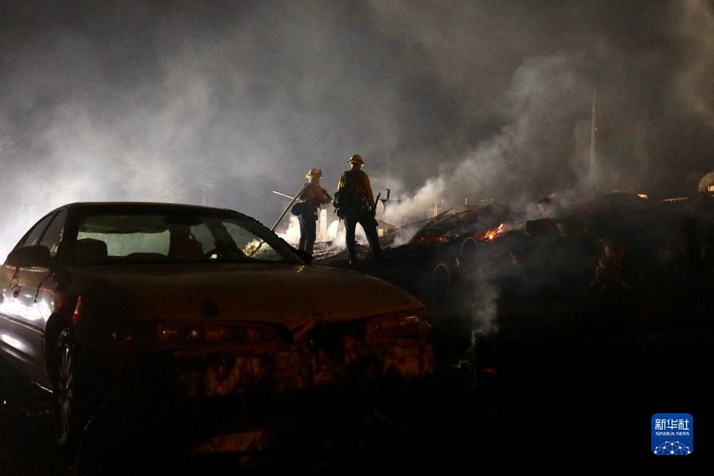 9月6日,消防員在美國加利福尼亞州里弗賽德縣一個(gè)社區滅火。新華社發(fā)