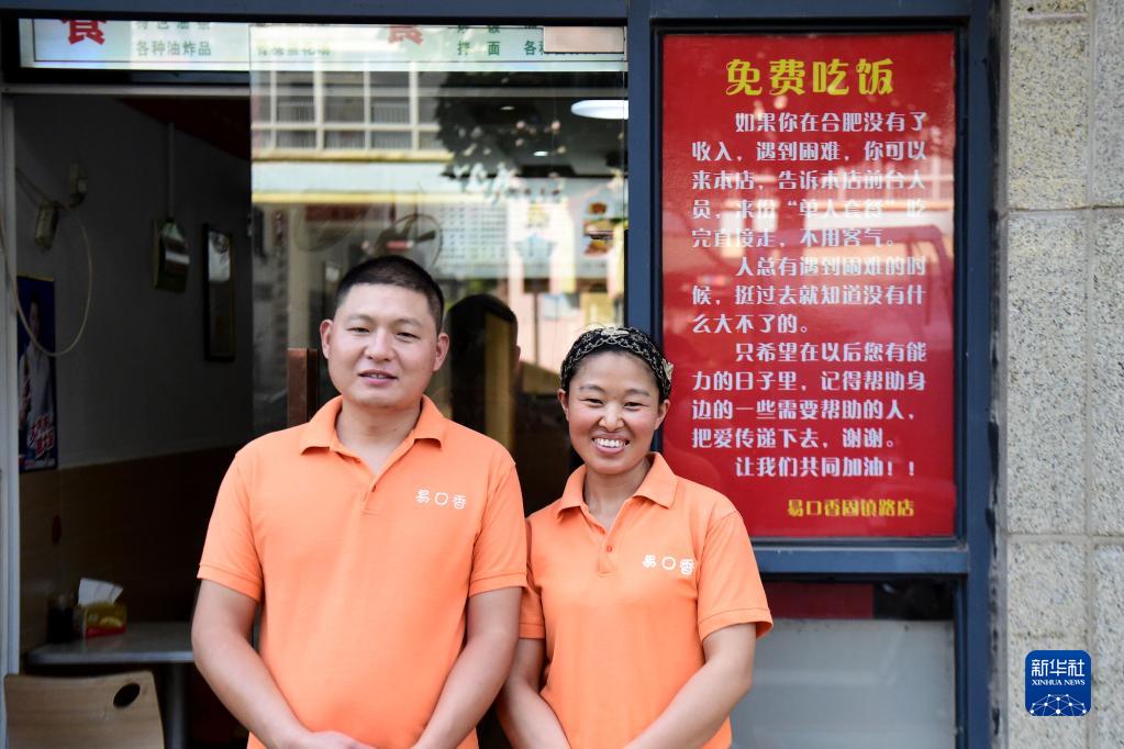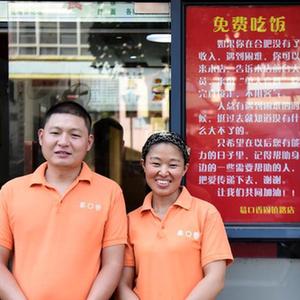 孫玉喜和王素俠夫妻是這家小店的老板,他們在外打拼多年,2015年在合肥投資開(kāi)了這家小店?;叵肫鹱约涸?jīng)在外打拼時(shí)的不易,夫妻倆決定讓遇到困難、手頭拮據的客人在店內免費用餐。