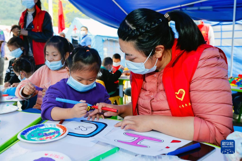 9月6日,四川省甘孜州瀘定縣磨西鎮在地震救災安置點(diǎn)里開(kāi)設了一個(gè)青青兒童樂(lè )園,通過(guò)做游戲等方式對這里的孩子進(jìn)行安撫。此后還將有更多青青兒童樂(lè )園在安置點(diǎn)里陸續設立。