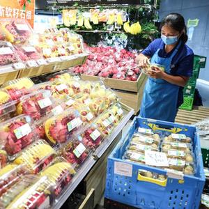 9月7日,貴陽(yáng)一生鮮超市工作人員在分揀水果。