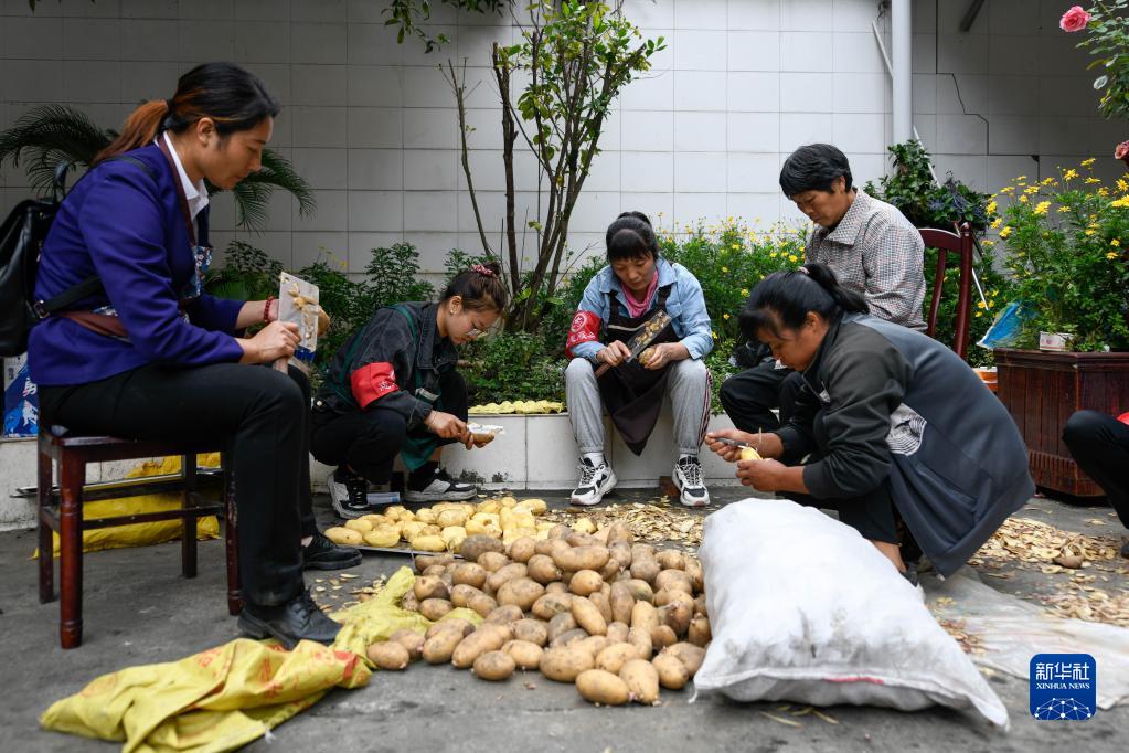 9月7日,在石棉縣草科鄉政府安置點(diǎn)內,當地群眾在準備午飯。地震發(fā)生后,該地與外界短暫失聯(lián),村民們自發(fā)拿出家中食物作為大家共享的生活物資。
