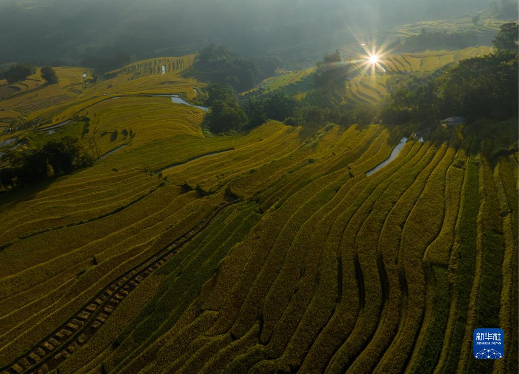 迎來(lái)收獲季的哈尼梯田(無(wú)人機全景照片,9月7日攝)。