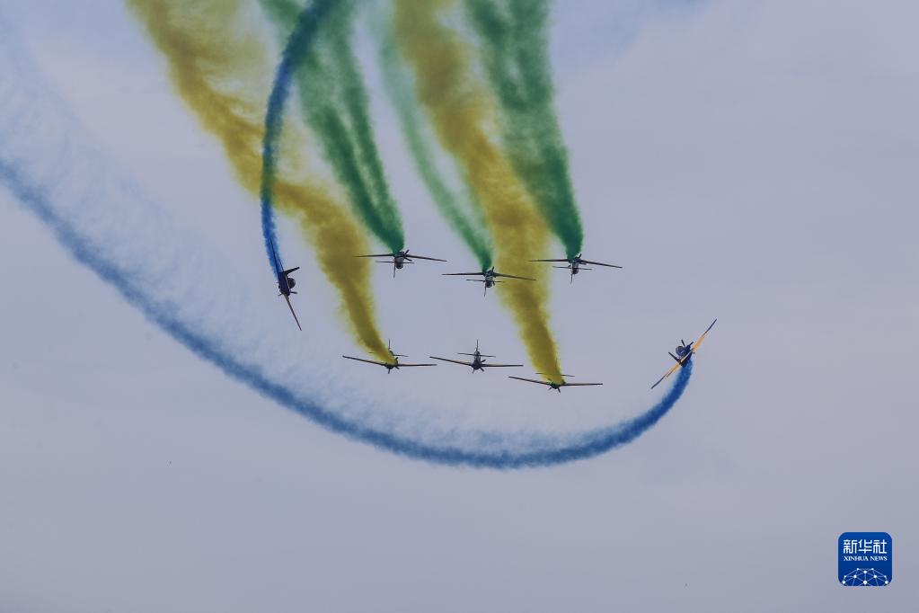 9月7日,飛機在巴西里約熱內盧科帕卡巴納海灘上空進(jìn)行飛行表演,慶祝巴西獨立200周年。