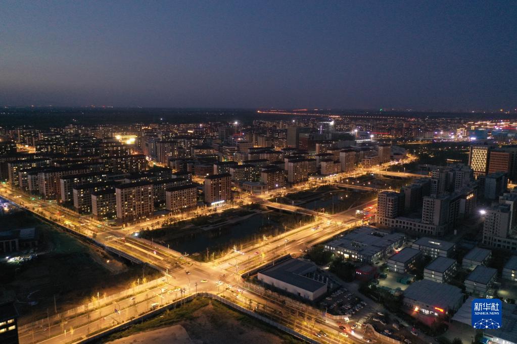 這是雄安新區容東片區夜景(9月7日攝,無(wú)人機照片)。