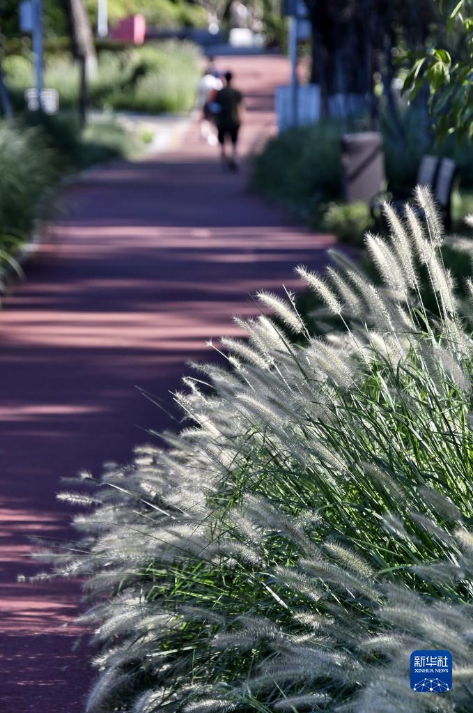 北京龍潭西湖湖畔修建的具有雨水滲透功能的休閑步道(9月5日攝)。
