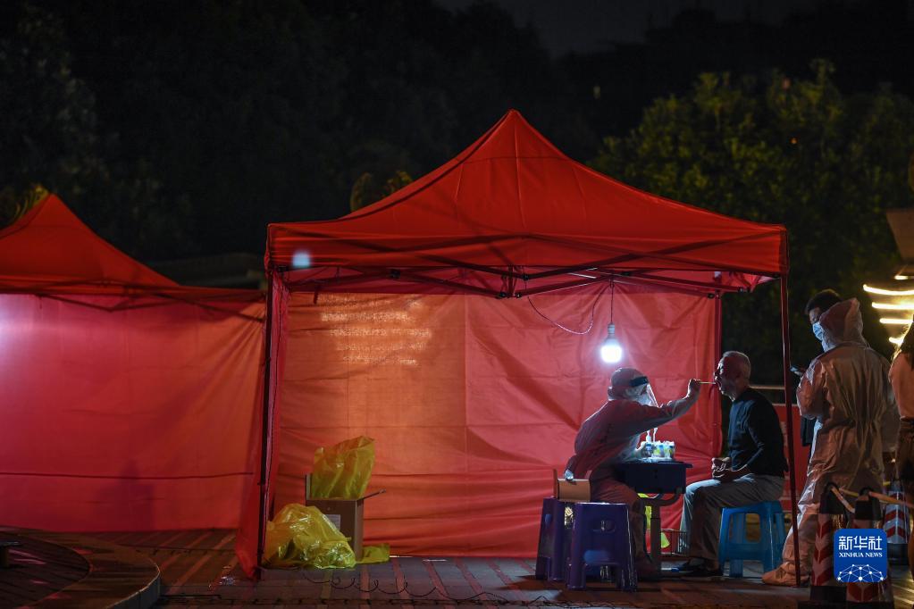 9月3日晚,醫護人員在貴陽(yáng)市云巖區大營(yíng)路街道中天花園社區給市民做核酸檢測。