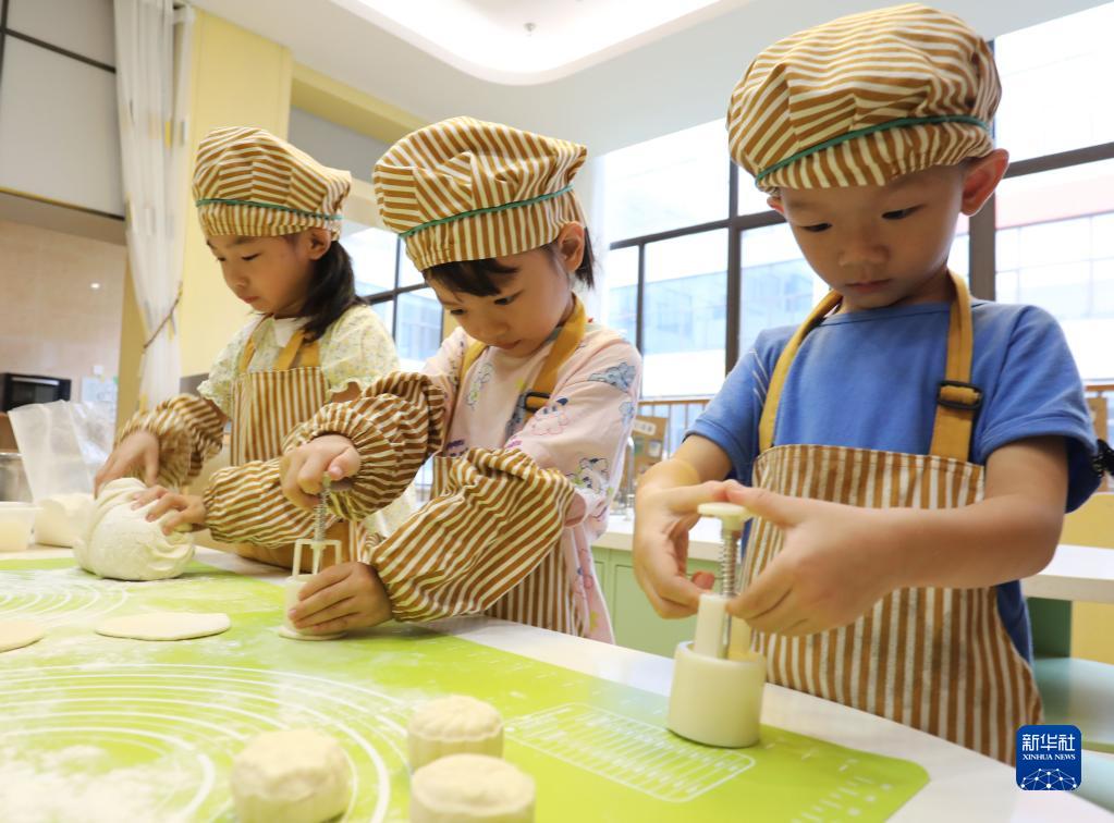 9月8日,蘇州工業(yè)園區東興路幼兒園的小朋友在學(xué)做月餅。