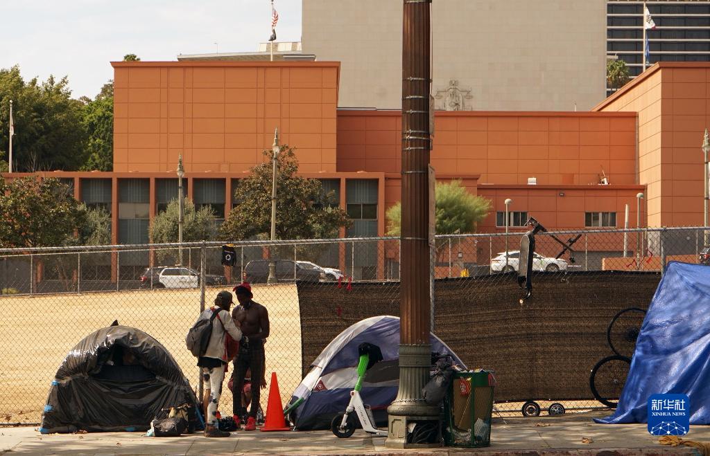 9月8日,在美國加利福尼亞州洛杉磯市區,街頭可見(jiàn)多個(gè)無(wú)家可歸者的帳篷。