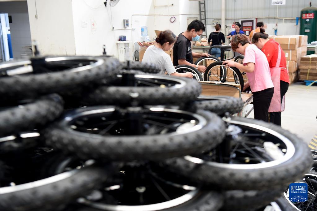 9月8日,在五河縣自行車(chē)產(chǎn)業(yè)園一家自行車(chē)生產(chǎn)企業(yè)內,工人在生產(chǎn)線(xiàn)上忙碌。