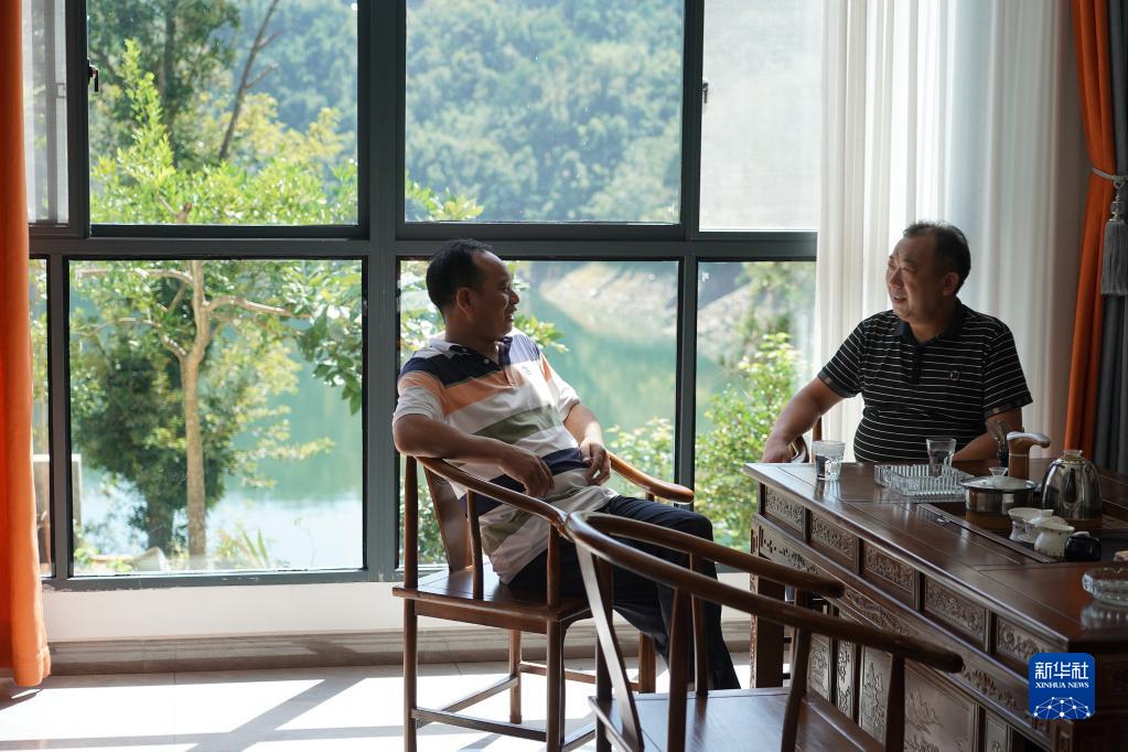 游客在安康市漢濱區漢江瀛湖邊的一家民宿內休息聊天(9月6日攝)。
