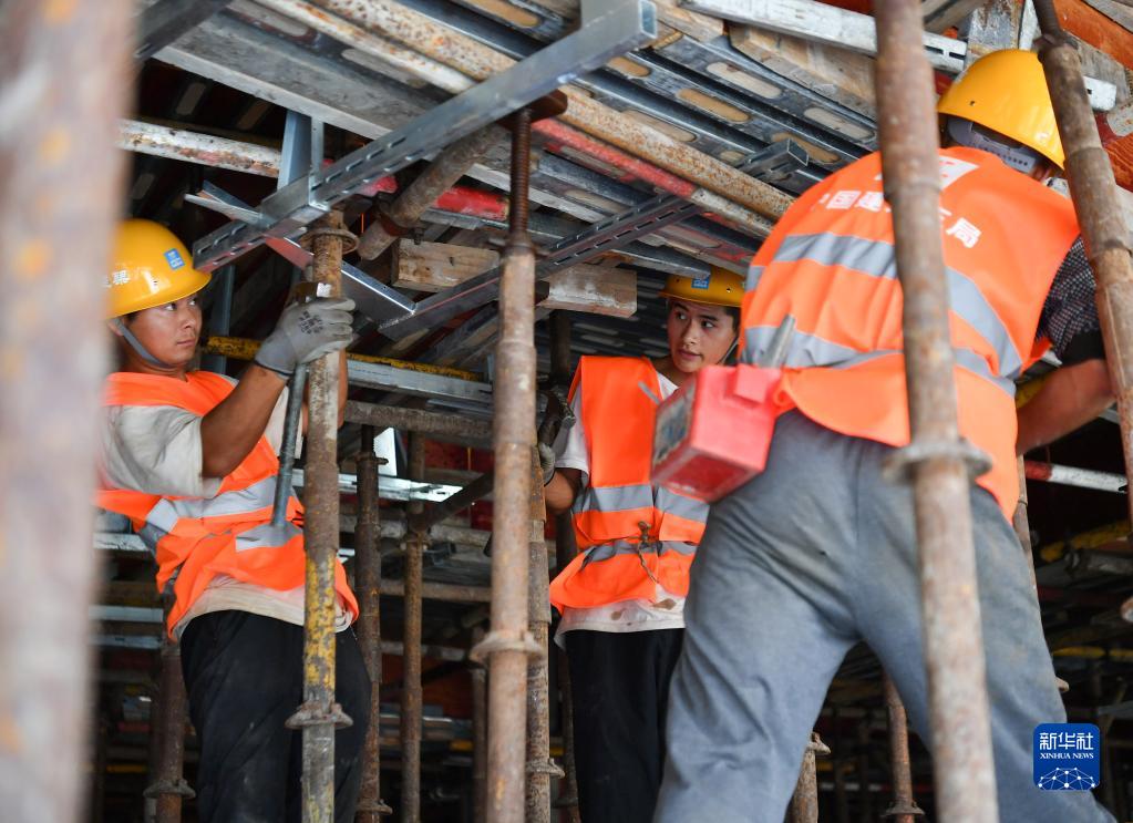9月9日,張志軍(右)與大兒子張勁松(左)、小兒子張虎在施工現場(chǎng)工作。