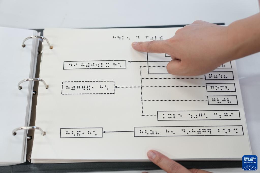 在北京聯(lián)合大學(xué)針灸推拿實(shí)踐教學(xué)基地,張琳展示和同事制作的針對視障學(xué)生的《病理學(xué)》觸摸圖譜(9月8日攝)。