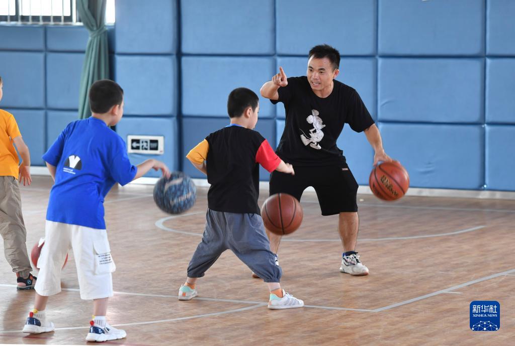 福州市星語(yǔ)學(xué)校教師聶親水在運動(dòng)與保健課堂上指導學(xué)生運球(9月7日攝)。