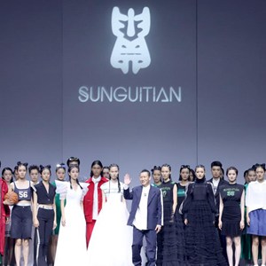 9月9日,時(shí)裝設計師孫貴填(前中)和模特謝幕。