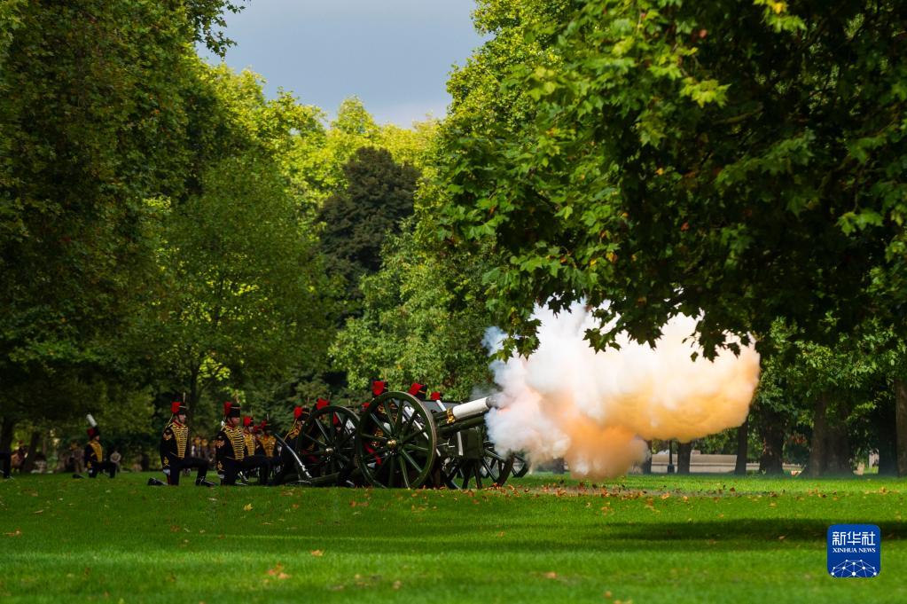 9月9日,士兵在英國倫敦海德公園鳴放禮炮悼念已故女王伊麗莎白二世。