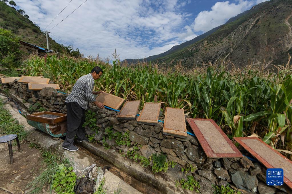 英扎次里在曬紙(9月5日攝)。