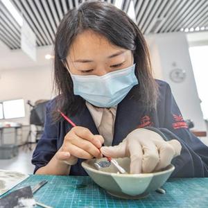 9月9日,參賽人員在進(jìn)行陶瓷文物修復技能比賽。