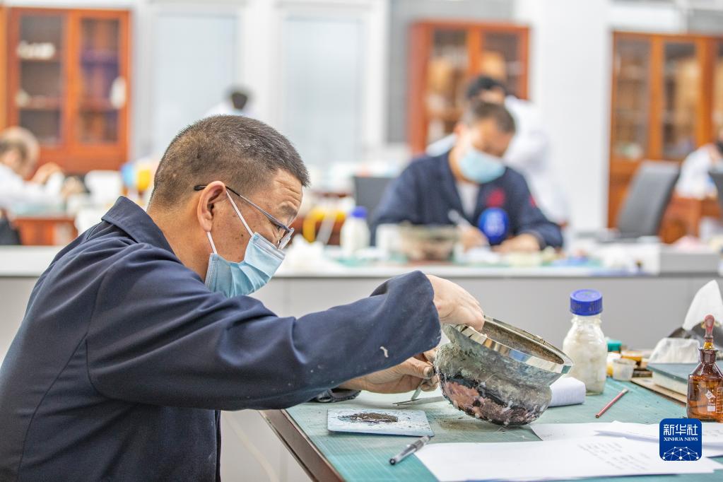 9月9日,參賽人員在進(jìn)行金屬文物修復技能比賽。