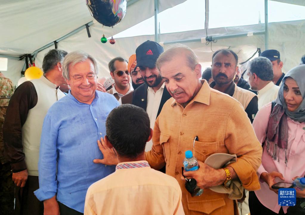 聯(lián)合國秘書(shū)長(cháng)古特雷斯10日在巴基斯坦總理夏巴茲·謝里夫陪同下,前往巴基斯坦西南部俾路支省烏斯達穆罕默德、南部信德省拉爾卡納等洪災重災區,慰問(wèn)受災群眾并視察了被此次洪災嚴重損壞的世界文化遺產(chǎn)摩亨朱達羅古城遺址。新華社記者 王歡 攝