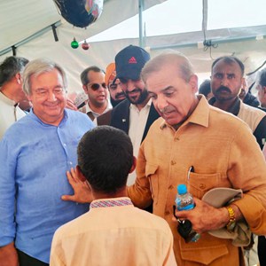 聯(lián)合國秘書(shū)長(cháng)視察巴基斯坦洪災地區