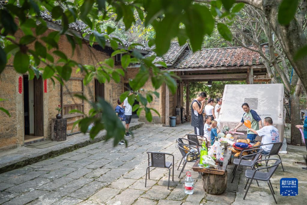 9月10日,游客在重慶市巴南區二圣鎮集體村的一家民宿內搭帳篷。新華社記者 黃偉 攝
