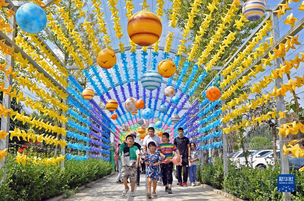 9月11日,游客在山東省煙臺市芝罘區春田里休閑農場(chǎng)觀(guān)光游玩。