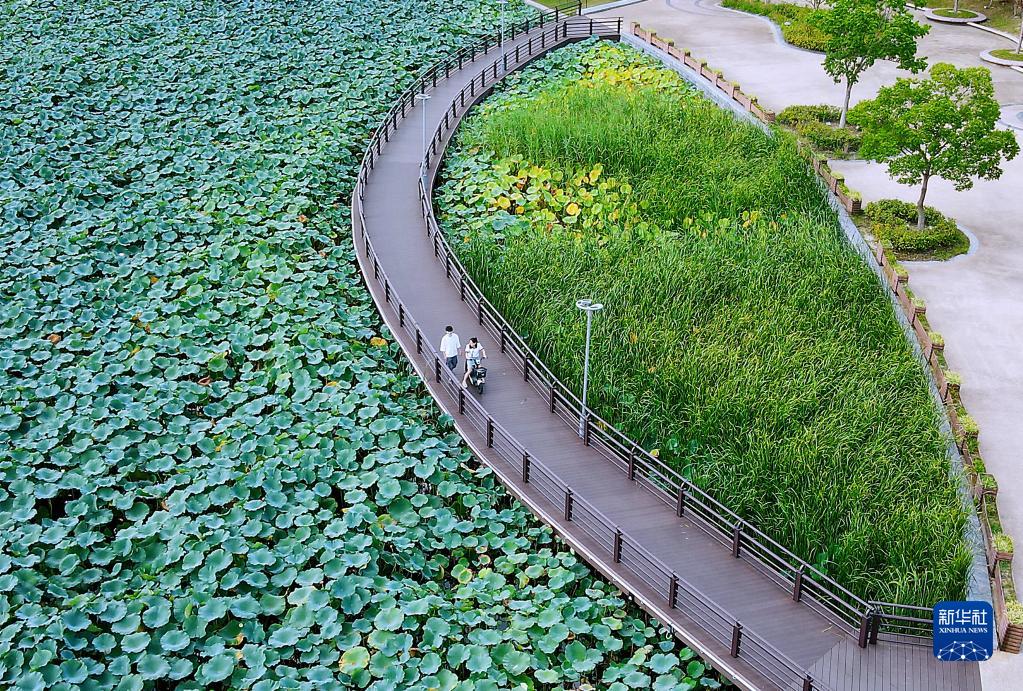 9月11日,市民在江蘇省如皋市龍游河生態(tài)公園游玩(無(wú)人機照片)。