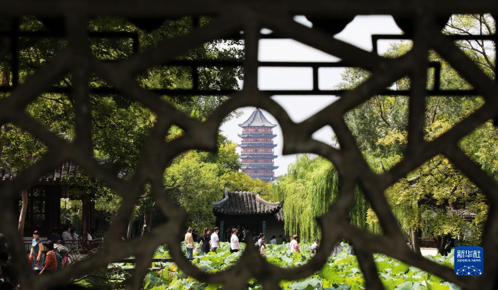 9月11日,游客在江蘇蘇州拙政園觀(guān)光游覽。