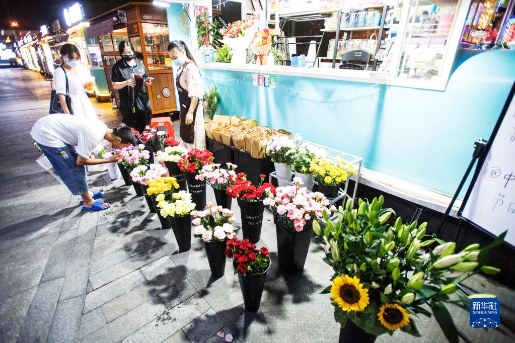 9月10日,市民在廣西南寧市興寧區吾悅廣場(chǎng)一家花店選購鮮花。新華社發(fā)(趙京武 攝)