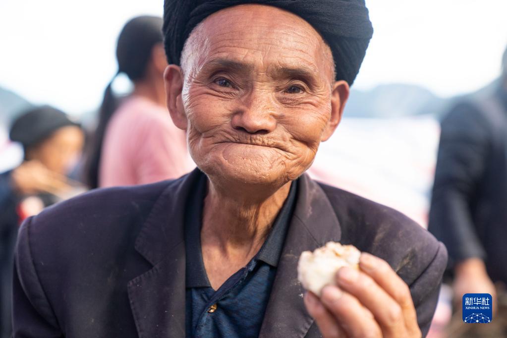 9月10日,在四川省石棉縣幸福村,一位老人在吃月餅。