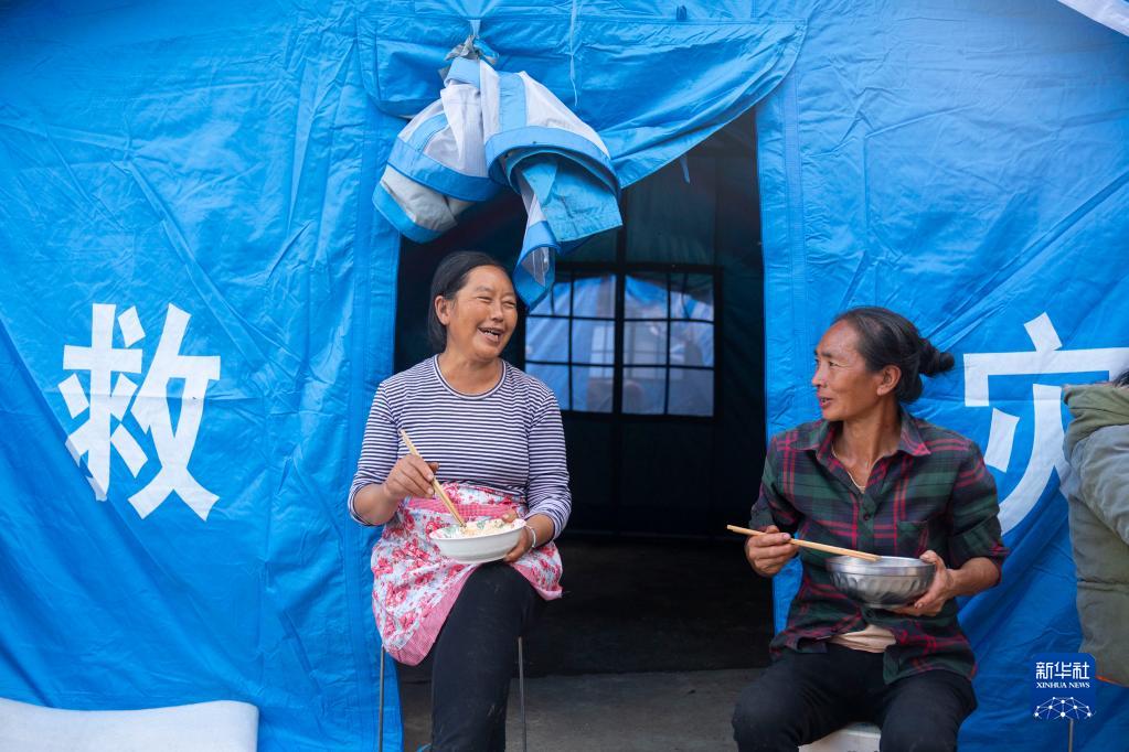 9月10日,在四川省石棉縣幸福村,村民在吃晚飯。
