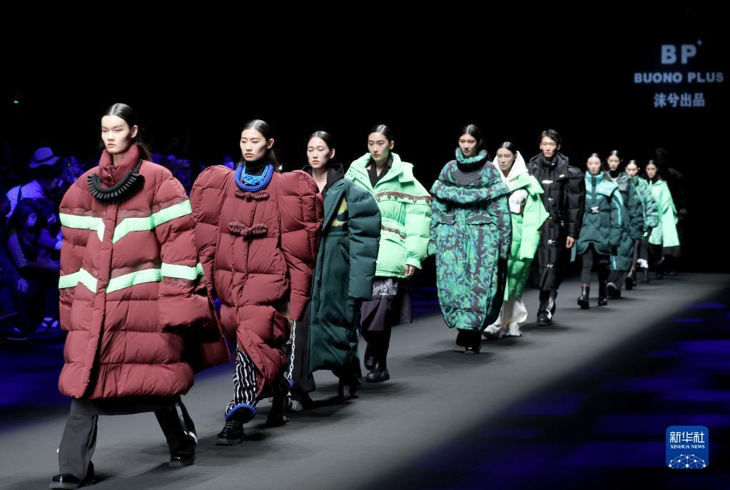 9月11日,模特在北京中國國際時(shí)裝周(2023春夏系列)舉行的“BUONO PLUS·姜佳”時(shí)裝發(fā)布會(huì )上展示設計師姜佳設計的羽絨系列服裝。