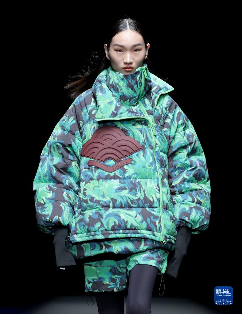 9月11日,模特在北京中國國際時(shí)裝周(2023春夏系列)舉行的“BUONO PLUS·姜佳”時(shí)裝發(fā)布會(huì )上展示設計師姜佳設計的羽絨系列服裝。
