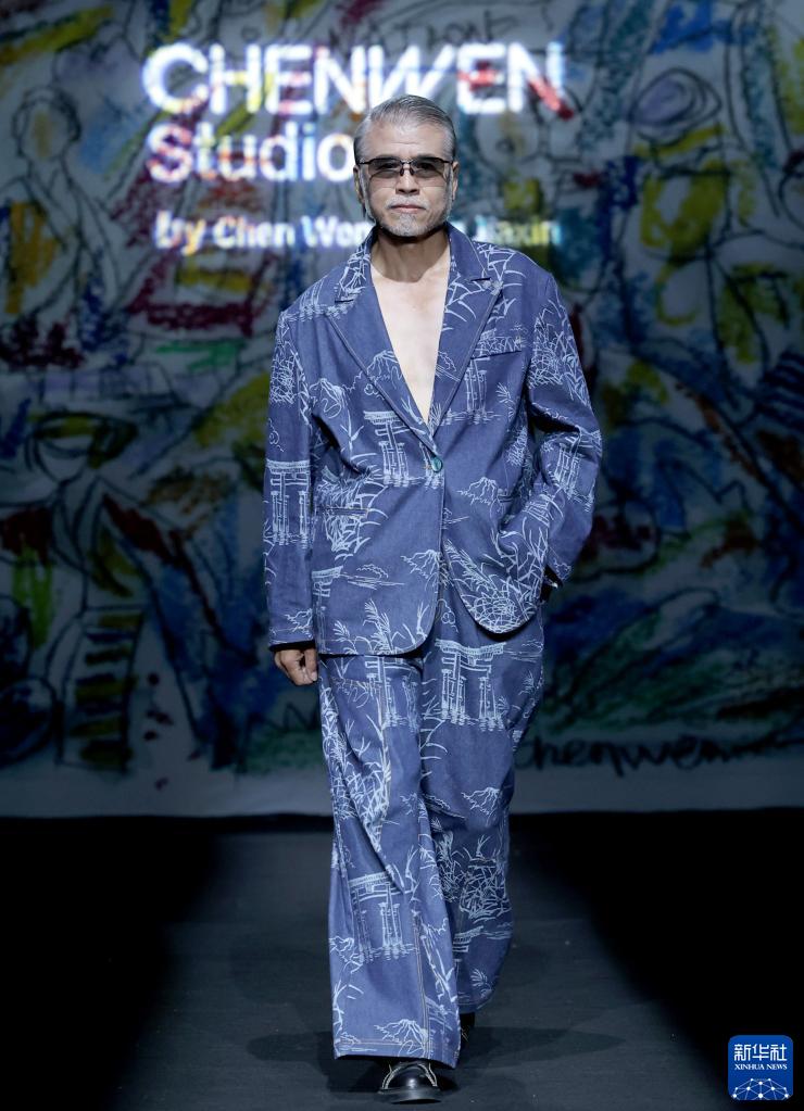 9月12日,模特在北京中國國際時(shí)裝周(2023春夏系列)舉行的“CHENWEN Studio·陳聞”牛仔親子裝發(fā)布會(huì )上展示時(shí)裝設計師陳聞設計的牛仔親子裝。