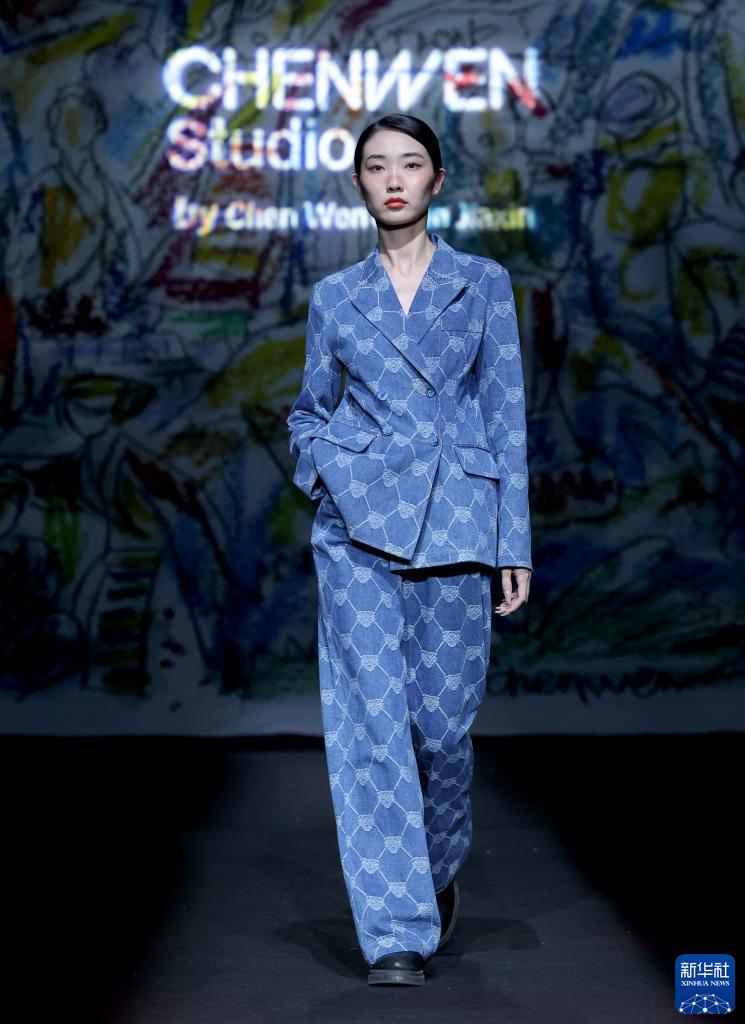 9月12日,模特在北京中國國際時(shí)裝周(2023春夏系列)舉行的“CHENWEN Studio·陳聞”牛仔親子裝發(fā)布會(huì )上展示時(shí)裝設計師陳聞設計的牛仔親子裝。